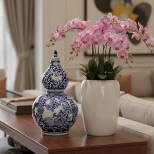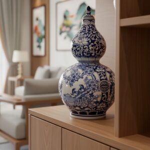 Bình được thiết kế theo dáng hồ lô truyền thống – biểu tượng phong thủy tượng trưng cho sự may mắn, sức khỏe và tài lộc. Phần miệng nhỏ, thân phình rộng giúp thu hút và lưu giữ vượng khí trong nhà. Đây là lý do bình hồ lô thường được sử dụng để trưng bày trong phòng khách, phòng làm việc hoặc không gian thờ cúng.