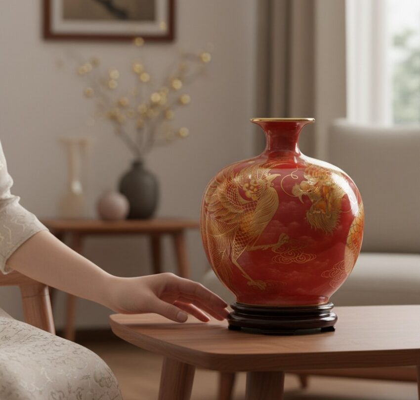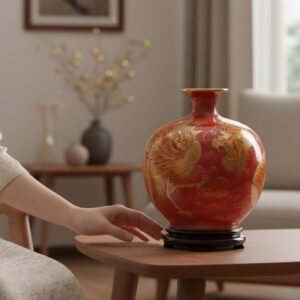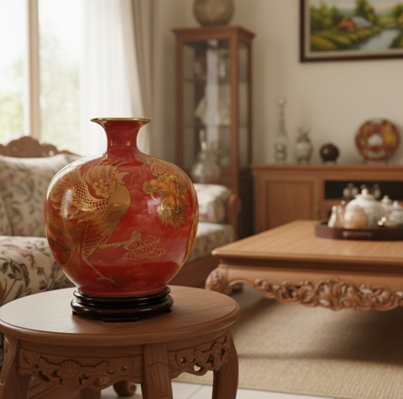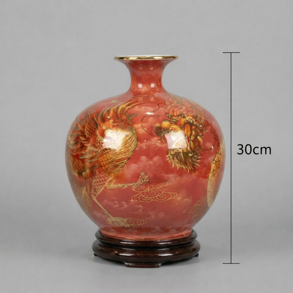 Các nghệ nhân lành nghề đã chăm chút từng chi tiết nhỏ, giúp hình ảnh rồng phượng trở nên sống động và uyển chuyển. Sự kết hợp giữa kỹ thuật truyền thống và nghệ thuật vẽ vàng 24K đã tạo nên một tác phẩm gốm sứ mang giá trị thẩm mỹ và phong thuỷ đặc biệt.