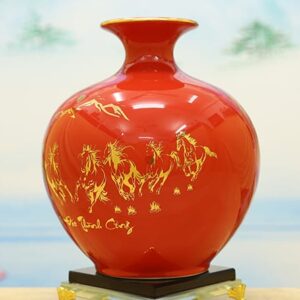 Sản phẩm được chế tác hoàn toàn thủ công tại làng nghề gốm sứ Bát Tràng danh tiếng. Với hình dáng đặc trưng “miệng rộng, cổ thắt, thân phình”, chiếc bình là “vũ khí” phong thủy giúp thu hút vượng khí và giữ gìn tài sản không bị thất thoát. Họa tiết 8 chú ngựa phi nước đại (Bát Mã) được đắp nổi hoặc vẽ tay tỉ mỉ, tượng trưng cho sự đoàn kết, tốc chiến tốc thắng trong kinh doanh và sự nghiệp.