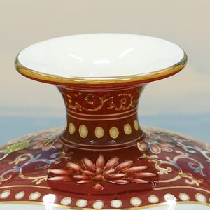 Sản phẩm nổi bật với tông màu đỏ rực rỡ hoặc tím quyền năng – những gam màu tương hợp tuyệt đối với người mệnh Hỏa. Theo thuyết ngũ hành, sắc đỏ giúp gia tăng năng lượng dương, mang lại sự tự tin và xua đuổi vận xui. Thiết kế thân bình phình to, cổ thắt lại giúp lưu giữ khí lộc, đảm bảo tiền tài “chỉ có vào mà không có ra”.