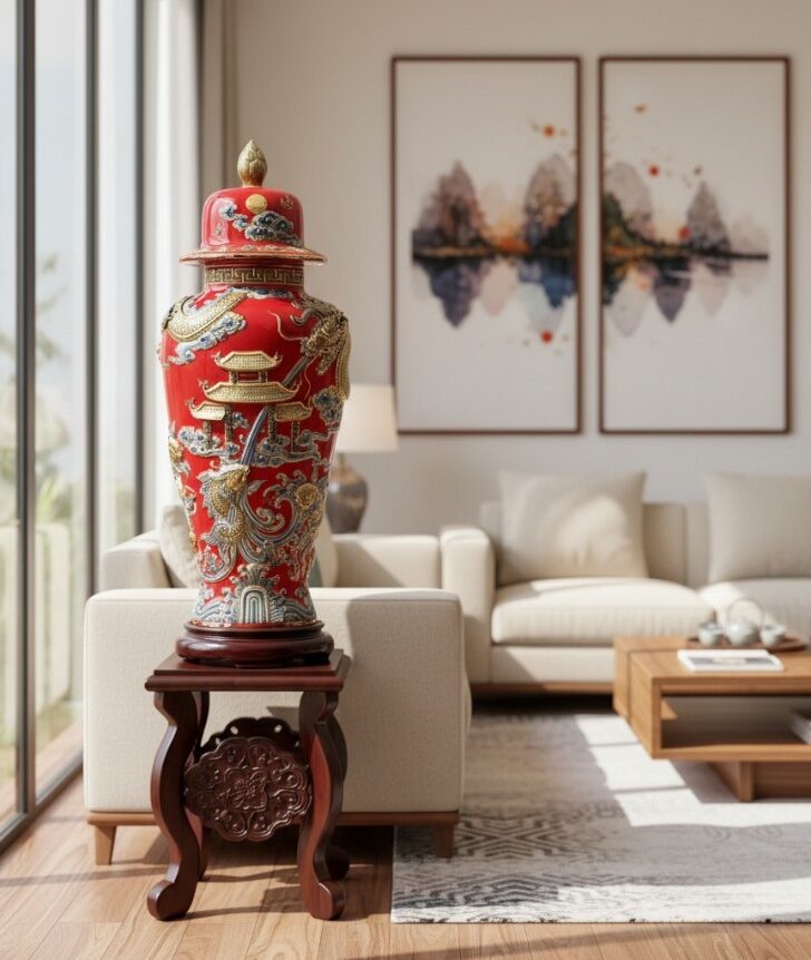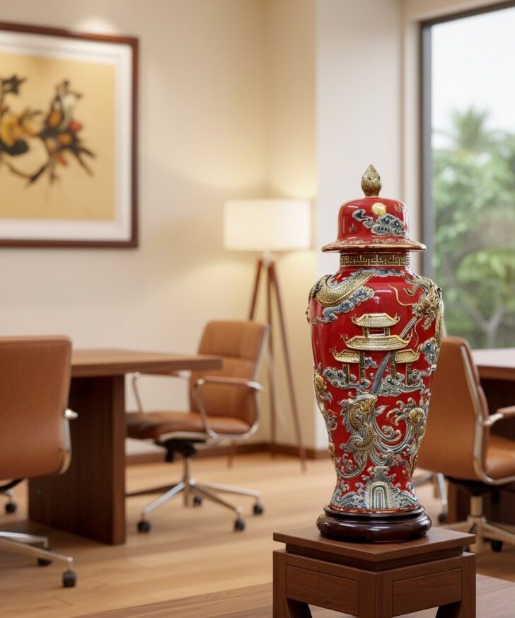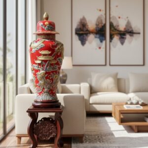 Choé phong thuỷ Cá chép vượt Vũ Môn hoá Rồng H80 màu đỏ