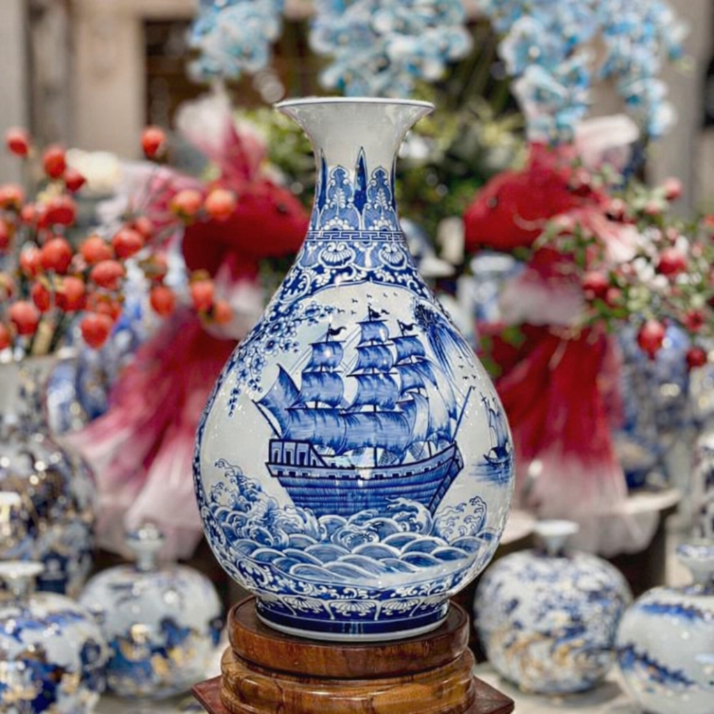 Quy trình sản xuất khắt khe từ tạo hình, vẽ họa tiết đến nung men giúp sản phẩm đạt chất lượng cao, bền màu và có giá trị sử dụng lâu dài. Đây không chỉ là vật trang trí mà còn là tác phẩm nghệ thuật gốm sứ truyền thống.